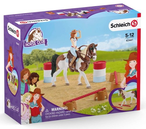 Oblíbeným westernovým závodem je barrel racing, při kterém účastníci co nejrychleji musejí objet rozestavěné sudy. Vedle barevných sudů obsahuje westernová jezdecká sada ze Schleich® Horse Club překážky, které si můžete rozestavět dle přání. Hanna tak má celou řadu parkurových možností. Vedle dívky s pohyblivými pažemi obsahuje sada půvabnou klisnu tennesseeského mimochodníka s odnímatelným sedlem a uzdou. Figurky a doplňky z kolekce Horse Club jsou propracovány do posledního detailu a přiblíží ti život ve stáji a kolem ní. Pronikni do světa chovu koní, nasbírej figurky a pořiď si vlastní jezdeckou stáj. Hannah je vášnivou westernovou jezdkyní. Poprvé se setkala s pětiletým valachem Cayenne, když uklízela stáj. Cayenne byl velmi plachý. Hannah mu zpívala jemným hlasem a netrvalo dlouho a staly se nerozlučnými kamarády. Hannah by se ráda stala zvěrolékařkou, stejně jako její maminka. Postavičky Schleich jsou detailně modelovány, láskyplně ručně malované a pedagogicky hodnotné. Figurka může jezdit na koni a má pohyblivé ruce. Vrhni se spolu s kamarádkami z klubu Horse Club do víru dobrodružství podbarveného dusotem koňských kopyt! Schleich jsou realistické a do detailů propracované figurky, kde se designeři soustředili na filozofii těla, strukturu svalů a celkový výraz postavičky. Děti si tak mohou hrát se zvířátky z celého světa, pravěkými dinosaury, filmovými a pohádkovými postavičkami, které jsou věrnou kopií svých předloh, a kouzelnými elfy a vílami z magického světa Bayala. Vhodné pro děti od 5 let.