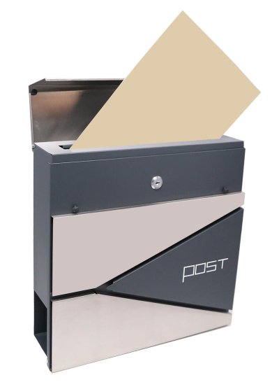 Schránka poštovní 371 x 362 x 105 mm, Zn + nerez, s otvorem na noviny.