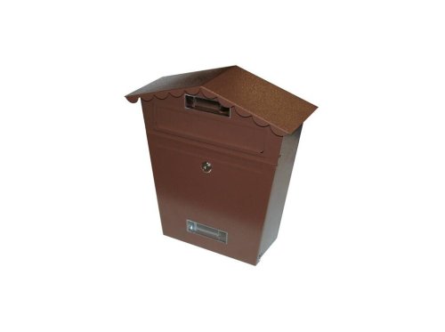Kovová poštovní schránka se stříškou. Rozměry 29 x 36 x 10.5 cm. Hnědá lakovaná barva. EAN 8590419523433
