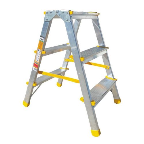 Oboustranné schůdky EUROSTYL jsou vyrobené z hliníku. Mají nízkou hmotnost, takže je snáze kamkoliv přenesete. Díky 3 nášlapným příčkám se dostanete i k věcem, které máte uskladněné v horních policích. Navíc jsou vybavené protiskluzovou úpravou pro větší bezpečnost. Popruhy spojují oba díly schůdek.