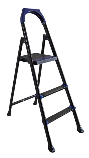 2 x nášlap + plošina rozměry rozložených schůdků: 40 x 71 x 109 cm hmotnost: 3,7 kg materiál: kov + plast barva: kov - černá, plastové díly - modrá nosnost: 150 kg