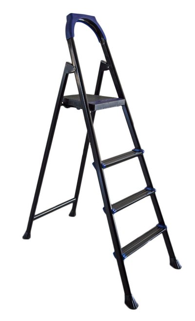3 x nášlap + plošina rozměry rozložených schůdků: 43 x 86 x 131 cm hmotnost: 4,4 kg materiál: kov + plast barva: kov - černá, plastové díly - modrá nosnost: 150 kg