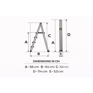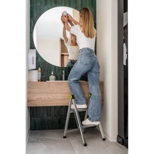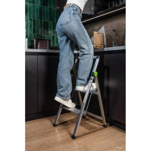 • Široký hliníkový profil – na rozdíl od typických domácích žebříků, kde je profil otočen k uživateli užší stranou, tento zdůrazňuje velký hliníkový povrch, který odráží současné modernistické interiéry založené na velkých vertikálních/horizontálních děleních