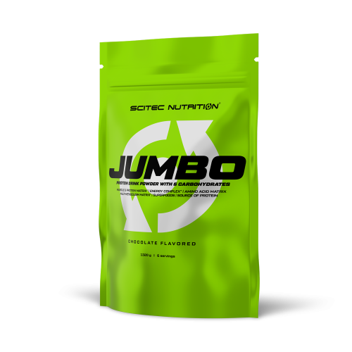 VÍCESLOŽKOVÝ PROTEINOVÝ MATRIX PŘIDANÝCH AMINOKYSELIN MATRIX METABOLICKÁ MATRIX VLÁKNA BÍLKOVINY POUZE ŽIVOČIŠNÉHO PŮVODU VYSOKÝ OBSAH KALORIÍ „Kalorická bomba” Pokud chcete přibrat, musíte za určitou dobu přijmout více kalorií, než spálíte. Pokud jste silný gainer s rychlým metabolismem, může to být obzvláště náročné, jelikož se musíte doslova celý den nacpávat, abyste dosáhli tohoto přebytek kalorií. Jumbo, věrné svému názvu, pomáhá těm, kteří chtějí zvětšit objem, snáze dosáhnout tohoto přebytku kalorií pomocí velkých porcí. Obsahuje 135 g uhlohydrátů a 53 g bílkovin na porci, což výrazně zvyšuje množství zkonzumovaných makroživin za den a tím i množství denně zkonzumovaných kalorií. Produkt je složen výlučně ze zdrojů bílkovin živočišného původu – samozřejmě s výjimkou různých muk, které nejsou považovány za zdroje bílkovin – které obsahují nejen všechny esenciální aminokyseliny, ale mají také poměr esenciálních aminokyselin. který je dokonale přizpůsoben lidským potřebám. Protein nacházející se v Jumbo přispívá k nárůstu svalové hmoty a udržování normální struktury kostí*. Produkt obsahuje také 3 gramy kreatinu v jedné dávce, což v tomto množství zvyšuje fyzickou výkonnost při krátkém, sekvenčním, vysoce intenzivním cvičení*. Energizující komplex**, trávicí komplex***, přidané aminokyseliny a superfood matrix doplňují působivou recepturu Jumbo.