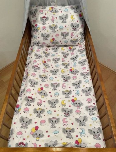 SDS Povlečení do postýlky Veselí sloníci 90/130, 45/60 Dětské povlečení do postýlky, vyrobeno ze 100% Bavlny, zapínání na zip, před prvním použitím doporučujeme vyprat na 40°C, ušito v ČR, lze objednat i jiný rozměr, dodací doba cca 14 dní Materiál: 100% Bavlna Rozměr: 1x 90/130, 1x 45/60 cm