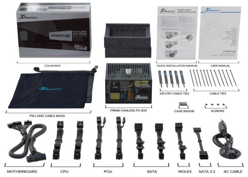 Seasonic Prime Fanless PX-500 Platinum disponuje výkonem 500 W a certifikací 80PLUS Platinum, díky čemuž dosahuje vysoké účinnosti 92 % při 50% zátěži systému. V praxi to znamená méně ztrát i méně produkce tepla, zato však více energie tam, kde je komponenty potřebují.