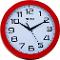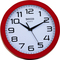 Nástěnné hodiny Napájení z baterie Rozměry 250 MM Pouzdro ve tvaru kruhu Plastové pouzdro Červená barva pouzdra Ručičkový ciferník Bílá barva ciferníku Ciferník s arabskými čísly