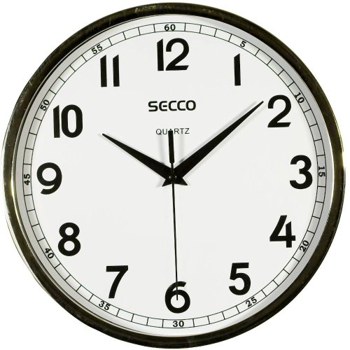 Nástěnné hodiny Napájení z baterie Rozměry 250 MM Pouzdro ve tvaru kruhu Plastové pouzdro ČERNÁ barva pouzdra Ručičkový ciferník Bílá barva ciferníku Ciferník s arabskými čísly