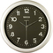 Nástěnné hodiny Napájení z baterie Rozměry 280 MM Pouzdro ve tvaru kruhu Plastové pouzdro Stříbrná barva pouzdra Ručičkový ciferník Černá barva ciferníku Ciferník s arabskými čísly