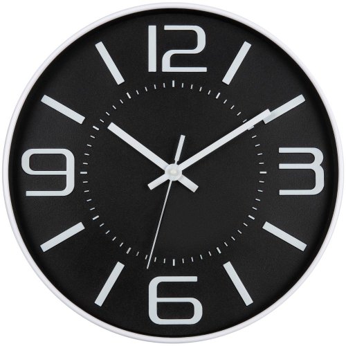 Nástěnné hodiny Napájení z baterie Rozměry 290 MM Pouzdro ve tvaru kruhu Plastové pouzdro Bílá barva pouzdra Ručičkový ciferník Černá barva ciferníku Ciferník s arabskými čísly