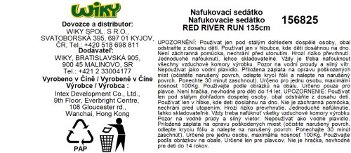 výrobce INTEX barva různá materiál vinyl pevná držadla zabudovaná opěrka na záda dva držáky na pití dvě vzduchové komory Rozměry: průměr 135 cm,