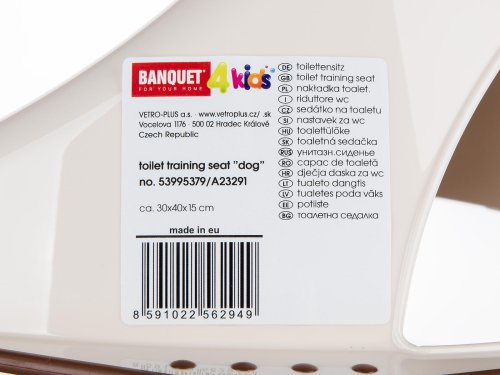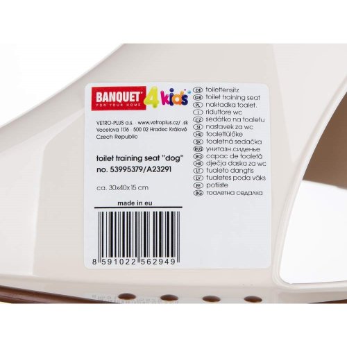 WC sedátko DOG je speciální prkénko pro děti, které začínají chodit samy na toaletu. Redukce na WC s protiskluzovou úpravou je zmenšenou kopií běžného prkénka, brání proklouznutí dítěte do mísy. Sedátko je vyrobeno z jemného plastu, praktické na čištění, velmi stabilní a hodí se na většinu WC.