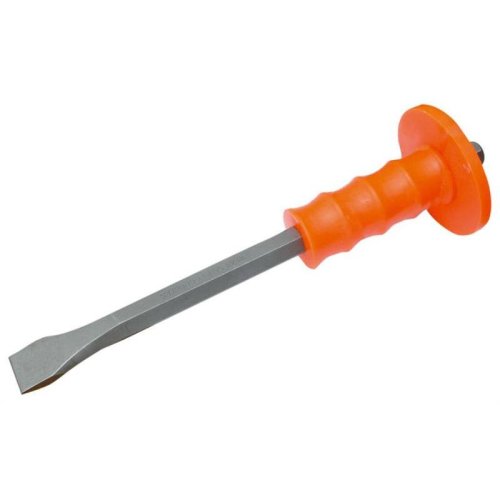 sekáč plochý s plastovou ochranou vyroben z kalené CrV oceli vhodný pro práci s kamenem, cihlou, stavebním materiálem