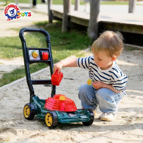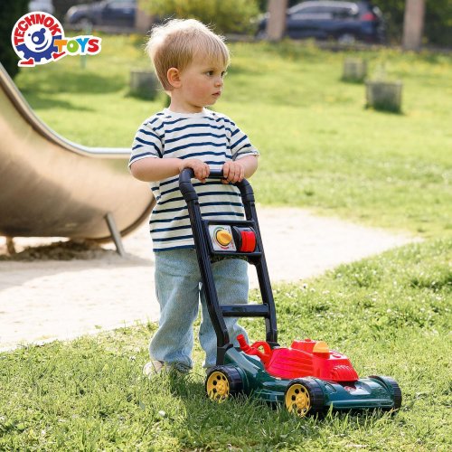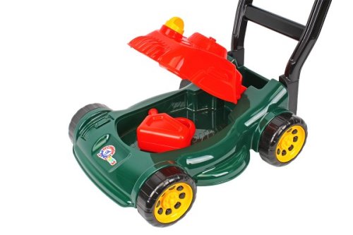 Tato barevná dětská sekačka z plastu je skvělým doplňkem pro venkovní hry na zahradě.