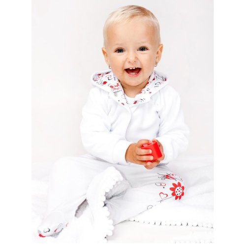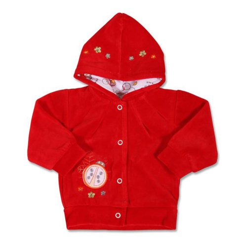 Krásná semišková mikinka s kapucí, s našitým obrázkem berušky. Složení: 80% bavlna, 20% polyester.