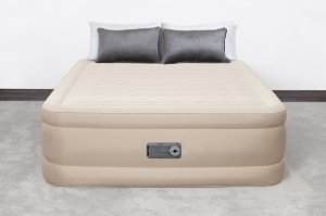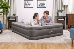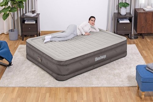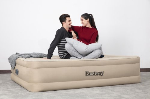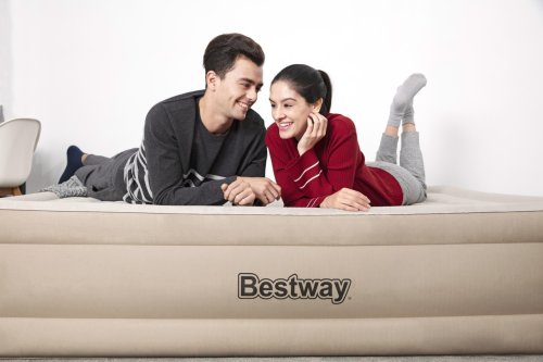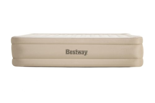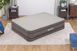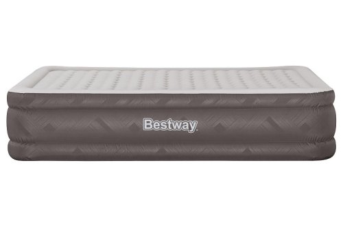 Bestway® Nafukovací matrace Fortech™ Queen nabízí vysoký komfort a dlouhou životnost díky inovativnímu materiálu Fortech™, který kombinuje PVC a polyester. Oproti běžnému PVC je až o 10 % lehčí, přitom však o 75 % odolnější proti roztržení, o 92 % méně náchylný k deformaci a až 150x odolnější proti oděru. Speciální tkaná struktura navíc zajišťuje, že povrch není ani příliš horký, ani studený. Luxusní Premium Soft Top™ povrch se dvěma vrstvami zajišťuje měkké ležení, zatímco vnitřní konstrukce podporuje správnou polohu těla a rovnoměrné rozložení tlaku. Rámová konstrukce pomáhá zabránit sklouznutí během spánku. Díky integrované elektrické pumpě je postel nafouknutá za 5 minut a po použití ji snadno vyfouknete a uložíte do přiložené tašky. Vestavěné elektrická pumpa funguje na střídavý proud 220–240 V. Matrace je vhodná pro vnitřní použití. Obsah: 1 nafukovací matrace, 1 úložný vak, 1 opravná záplata. Počet osob: 2. Maximální nosnost: 350 kg. Rozměr nafouknuté matrace: 46 x 152 x 203 cm. Rozměr balení: 35 x 39 x 22 cm.