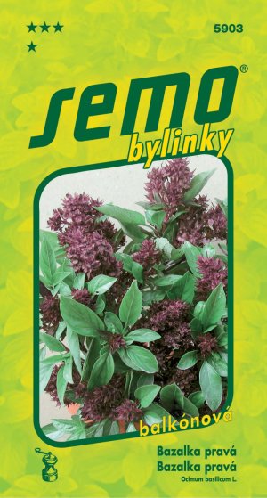 Keříčkovitě rostoucí letnička s výrazně aromatickou natí. Odedávna se pěstuje jako kořeninová, léčivá i medonosná rostlina. Semena vyséváme v březnu až dubnu na povrch substrátu a lehce přihrneme. Bazalka má ráda živnou, humózní zeminu namíchanou s rozloženým hnojem. Pozor – mladé rostlinky v příliš hustých výsevech zahnívají. Vysazujeme v květnu na chráněné místo s plným sluncem. Pravidelně