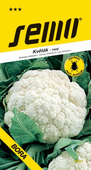 BORA (kód 1801) – velmi raná odrůda pro nejranější jarní polní pěstování ze sadby. Růžice je střední, smetanově bílá, částečně zakrytá, o průměrné hmotnosti 370 g. Je odolná proti fialovění, při velmi slunečném počasí je třeba ve sklizňovém období zalamovat listy, aby nedocházelo k výraznému žloutnutí růžic. Sklizňové období je konec května až polovina června. Vyžaduje intenzivní závlahu za největšího růstu a před sklizní. Vegetační doba 104 – 112 dní.