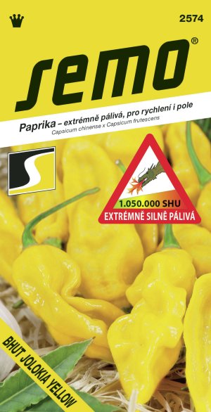 BHUT JOLOKIA YELLOW - tato extrémně pálivá paprika (900 000 – 1 100 000 SHU) je křížencem papriky čínské (Capsicum chinense) a papriky křovité (Capsicum frutescens). Svůj původ má v Bangladéši a na severovýchodě Indie.