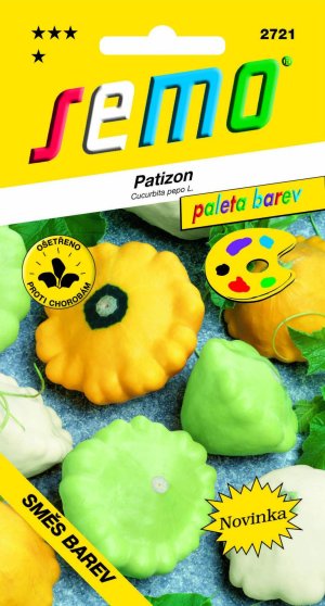 SMĚS BAREV – kolekce PALETA BAREV – směs bílých, zelených a žlutých patizonů. Plod je diskovitý, s pevnou kompaktní dužninou. Osivo jednotlivých odrůd je v sáčku barevně odlišeno.