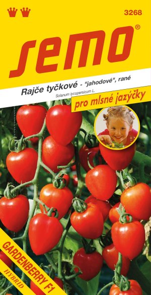 GARDENBERRY - kolekce PRO MLSNÉ JAZÝČKY - lahůdková rajčata z japonského šlechtění. Drobné plody ve tvaru jahod o váze 15 - 20 gramů jsou dužnaté a velmi aromatické. Rostlina je indeterminantní (tyčková) s dlouhými hrozny plodů. Plody jsou odolné k praskání. Opravdová delikatesa mezi rajčaty s výraznou chutí a vůní.