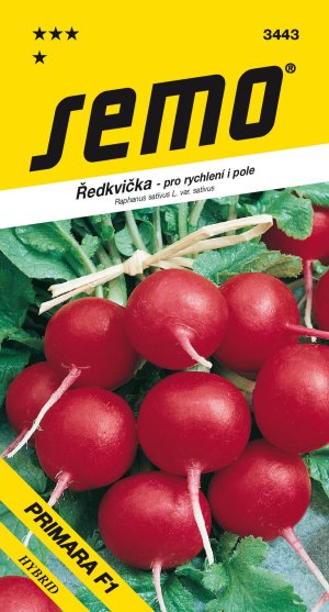 PRIMARA - velmi raná hybridní ředkvička se středně velkými bulvičkami určena pro polní pěstování a jarní přirychlování. Vzhledem k odolnosti k vybíhání je vhodná i pro podzimní pěstování. Optimální velikost bulviček je 4–5 cm, mají velmi intenzivní tmavě červené zabarvení, vynikající vnitřní struktury. Tmavě zelené, pevné, středně dlouhé listy jsou velmi dobrým předpokladem ke svazkování. Doporučený spon je 7-8 x 7-8 cm na dobře prokypřených vyvýšených záhonech.