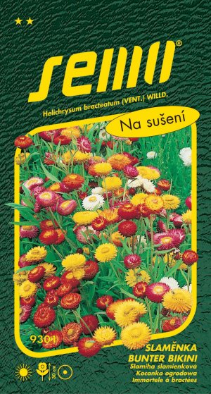 Nízká odrůda tradiční slaměnky s rostlinami ve směsi barev. Vhodná na letničkové záhony i k sušení samostatných květů.