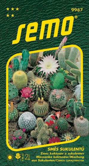 Směs sukulentních rostlin a kaktusů různých tvarů a velikostí. Vyséváme do speciálního substrátu ve složení: 1/3 kompost, 1/3 písek, 1/3 rašelina. Po vzejití přepikýrujeme a následně vysázíme do květináčků. Rostliny se uplatní při výzdobě bytů.