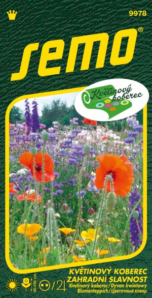 ZAHRADNÍ SLAVNOST (kód 9978) - kolekce KVĚTINOVÝ KOBEREC - směs složená z 12 dvouletek a 21 trvalek, propojuje venkovskou zahradu s navazující loukou. Snadno a bez plotu budete začátkem léta procházet mezi květy chrpy, máku, kopretin i lupiny. Letní atmosféru doplní i vůně večernice, která přivábí nejednoho nočního motýla. Časem se připojí kokarda, mavuň, hvozdík a další léty prověřené trvalky. Vyséváme v červnu až červenci, směs kvete v příštím roce od konce května. Výška rostlin je 30-100 cm.