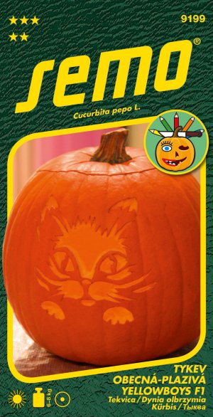YELLOWBOYS F1 (Cucurbita pepo L.) – tykev vhodná pro HALLOWEEN. Plody o hmotnosti 8 – 10 kg jsou ploše kulaté, s výrazně oranžovou pokožkou s atraktivním žebrováním. Pokožka je dostatečně pevná, ale není tvrdá, takže se dobře vykrajuje. Vyniká vysokou tvarovou vyrovnaností plodů. Sytě oranžová dužina je vhodná pro kuchyňskou úpravu, zejména je vynikající na dýňové polévky.