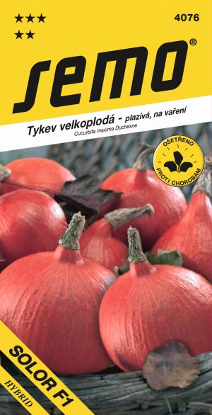SOLOR - tmavě oranžově probarvená tykev s tuhou tmavou dužinou, typu Hokkaido. Plody mají tmavěoranžovou až téměř červenou slupku, tvarově i velikostně velmi vyrovnané. Má o 2 až 3 měsíce delší skladovatelnost než Uchiki-Kuri, je o 20 – 30 % výnosnější a v porovnání s klasickým Hokkaidem podstatně déle skladovatelné. Optimální skladování je v suchu při teplotě 12 až 22 oC. Tuto odrůdu nabízíme také v BIO kvalitě!