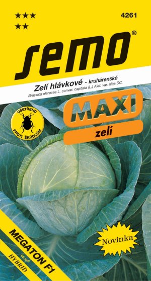 MEGATON - kolekce MAXI – polorané zelí odolné Fusariu. Velmi vitální typ produkující velké hlávky s jemnou strukturou a krátkým košťálem. Velmi výnosné, výborně se hodící pro kruhárenské účely. Vegetační doba rostlin od výsadby je 102 dní. Doporučený počet rostlin na 1 ha je 28 000 ks.