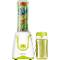 Smoothie mixér Ideální pro přípravu nápojů z čerstvého ovoce a kondičních nápojů, mléčných koktejlů, míchaných nápojů, koktejlů, polévek, salsy, omáček, dětské výživy Míchací nádoba může být vyjmuta a použita jako cestovní nádoba Víčko s otvorem na pití zabraňuje náhodnému rozlití Snadné čištění: Nádoba, víčko i nože mohou být bezpečně umývány v myčce na nádobí Jedna vyjímatelná láhev o objemu 0,6 l a jedna o objemu 0,3 l slouží jako láhve na pití Láhve odolné proti nárazu jsou vyrobeny z materiálu TRITAN, který neobsahuje BPA Pulsní spínač zaručuje efektivní promíchání Čtyři vysoce kvalitní snímatelné nože z nerezové oceli pokryté vrstvou titanu - Zabraňuje ztrátám enzymů a vitamínů - Omezuje oxidaci výživných koktejlů Vynikající stabilita díky přísavkám Láhve jsou vhodné pro držáky nápojů v automobilech Příkon: 500 W Napětí a kmitočet: 220-240 V, 50/60 Hz