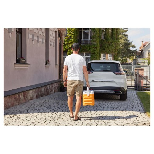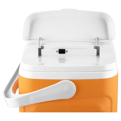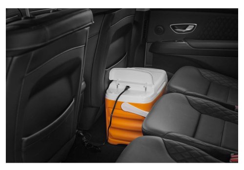 Disponuji super vnitřními i vnějšími rozměry a pohodlně se vejdu všude, kde chcete, abych byla při ruce. Můj dlouhý kabel dosáhne pohodlně ke každé 12V zásuvce. Velká pevná rukojeť vámpadne do ruky a když ji zapřete o hranu na středu spodní strany víka, poslouží jako vzpěra, abyste se snadno dostali k obsahu.