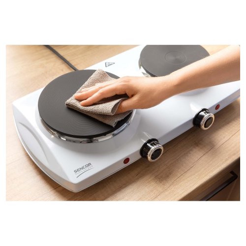 Svoje oblíbené dobroty si uvaříte i v malé kuchyni. Jsem elektrický vařič Sencor SCP 2253WH-EUE4, okouzlím vás svými kompaktními rozměry a nízkou hmotností, díky které si mě můžete vzít s sebou třeba i na dovolenou. Mám vysoký příkon a dvě kvalitní litinové plotýnky, takže se rychle rozpálím a nevyžaduju speciální vané nádobí. Teplotu můžete plynule regulovat díky otočným knoflíkům. Už víte, co si na mně uvaříte?
