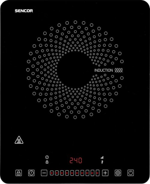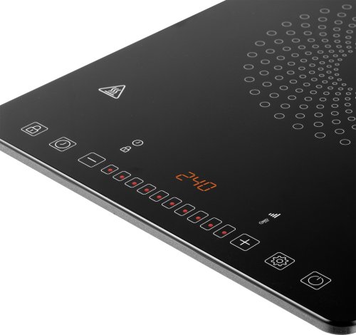 Jednoplotýnkový indukční vařič Ultratenké kompaktní provedení; pouze 4,3 cm na výšku Dotyková tlačítka pro ovládání vařiče a jeho funkcí Nastavení teploty a výkonu pouhým pohybem prstu vlevo či vpravo Velký přehledný LCD displej s červeným podsvícením Snadné čištění Mikroprocesorové řízení provozu Automatická detekce nádob pro indukční vaření Možnost volby nastavení teploty/výkonu Regulace teploty od 60 °C do 240 °C Deset stupňů výkonu od 200 do 2000 W Časovač vypnutí do 180 minut v krocích po 5minutách Tlačítko ON/OFF pro zapnutí nebo přepnutí do pohotovostního režimu Automatické vypnutí vařiče po 2 hodinách nečinnosti Okamžitý výkon bez dlouhého rozehřívání Tepelná pojistka proti přehřátí Indikace zbytkového tepla Zámek ovládacího panelu Protiskluzové nožky Jmenovitý rozsah napětí: 230 - 240 V Jmenovitý kmitočet: 50/60 Hz Jmenovitý příkon: 2000 W Varná plocha: sklokeramická indukční Počet plotýnek: 1 Barva: černá Hmotnost: 2,3 kg Rozměry: 4,3 x 29,5 x 36 cm (v × š × h)