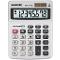 Stolní kalkulačka Velký 8-mi místný LCD displej Výpočet odmocniny Výpočet procent Čtyřtlačítková nezávislá paměť Označení řádu-tříčislicové čárky Tlačítko změny znaménka Kovový štítek pro větší odolnost Automatické vypnutí Duální napájení (1xLR41) Rozměry: 131x100x26 mm (dxšxv) Hmotnost: 95 g