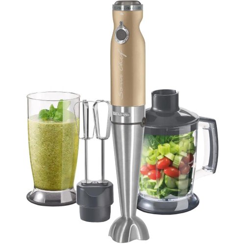 Záruka 6 let na motor Technologie TITANIUM QuadBlade Příkon 1 200 W Extra tichý DC motor Plynulá regulace rychlosti (20 rychlostí) Ergonomicky tvarovaná rukojeť Nerezový nástavec použitelný i pro mixování horkých pokrmů Nerezová sekací čepel Příslušenství 800 ml mixovací nádobka s víčkem Nerezový dvoumetlový šlehací nástavec Sekáček o objemu 1 250 ml s nerezovými noži Tlačítka pro uvolnění odnímatelného nástavce Závěsné očko Délka přívodního kabelu: 1,2 m