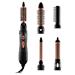 Horkovzdušná kulma, 2 stupně nastavení teploty, tlačítko studeného vzduchu, keratin funkce, funkce ionizace s antistatickým účinkem, 5 výměnných nástavců, závěsné očko, bezpečnostní pojistka proti …
