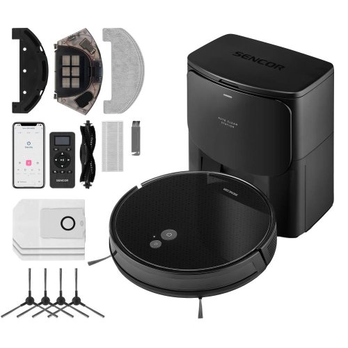 Vysavač Sencor SRV 6485BK si s přehledem poradí se všemi typy podlah, přičemž zajistí dokonalou čistotu a lesk. Disponuje funkcí vysávání i mopování. K dispozici je automatické vysypávání nádoby na prach přímo do sáčku umístěného v nabíjecí stanici. Sací výkon 3 000 Pa a délka provozu až po dobu 140 minut zajišťují perfektní výsledky. Ovládání probíhá přes dálkový ovladač nebo mobilní aplikaci Sencor Home, která nabízí neustálou kontrolu a možnost nastavování i mimo domácnost. Velký rotační kartáč obstará hrubou špínu, přičemž vyčištění každého rohu mají na starost dva boční kartáče. Výška pouhých 7,5 cm a průměrem 32 cm zajišťuje snadný pohyb mezi překážkami, pod nábytkem i v menších prostorách. Efektivní pohyb má nastarost gyroskopická navigace.