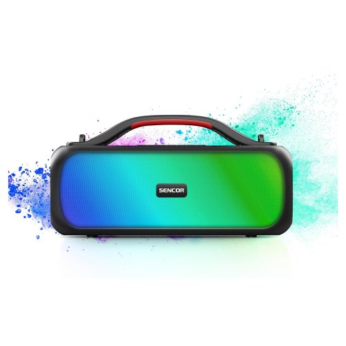 Voděodolný reproduktor SSS 3100 překvapí dynamickým zvukem a perfektní světelnou show. Umožňuje poslech oblíbené hudby ze smartphonu nebo tabletu prostřednictvím bezdrátového připojení Bluetooth 5.1 . Výkonný a čistý zvuk zajišťují dva reproduktory s maximálním výkonem 60 W a dva pasivní zářiče. Je vybaven technologií TWS umožňující současné připojení dvou reproduktorů. Nemusíte se obávat poslechu hudby za nepříznivého počasí nebo vedle bazénu, SSS 3100 je totiž voděodolný se stupněm krytí IPX5. Díky velké vestavěné 3 600mAh dobíjecí baterii můžete poslouchat hudbu až 7 hodin (při 50% hlasitosti).