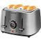 4 otvory pro opékání čtyř toastů (délka 135 mm) Prémiový nerezový vzhled Opékací mřížka na ohřev a rozpékání housek Tři funkce v jednom: