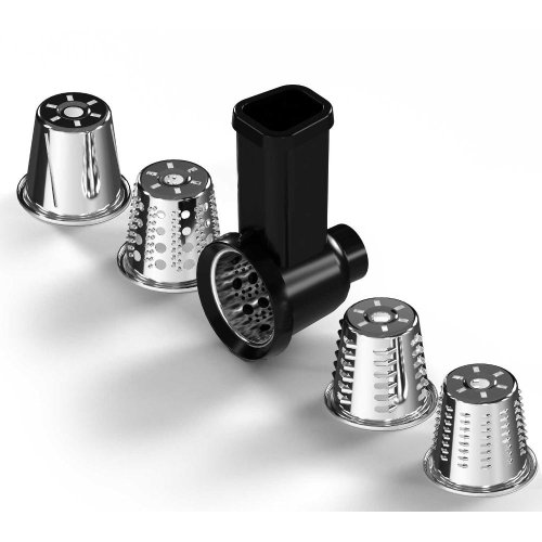 Kráječ a strouhač se 4 kužely z nerezové oceli Nástavec na strouhání Pěchovadlo Velmi jemné struhadlo Hrubé struhadlo Struhadlo na krájení plátků Jemné struhadlo