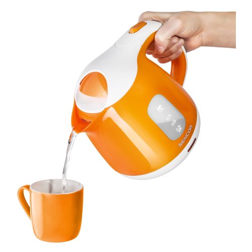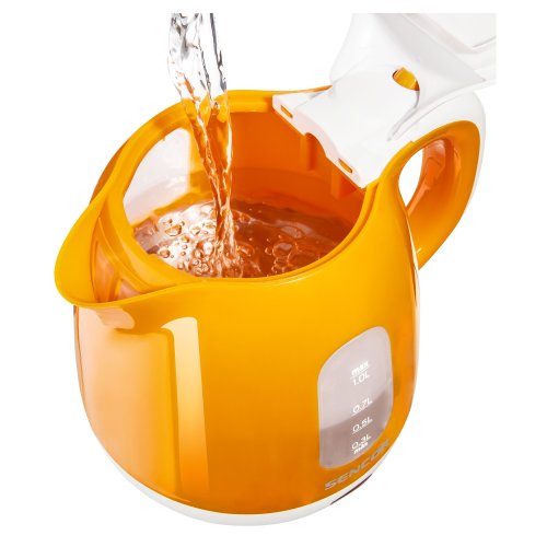 SWK 1013OR Objem 1 l Oboustranný vodoznak Ergonomicky tvarovaná rukojeť Snímatelný a omyvatelný filtr nečistot a vodního kamene Topné dno z nerezové oceli se zakrytou topnou spirálou Víko opatřené bezpečnostním …