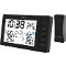 Ikona předpovědi počasí (slunečno, mírně oblačno, oblačno, déšť, sněžení) Měření vnitřní teploty a vlhkosti Měření venkovní teploty a vlhkosti Rádiem řízené hodiny pomocí signálu DCF77 (možnost ručního nastavení) Digitální čas, Datum a den v týdnu Indikace úrovně komfortu (3 úrovně) Varování před mrazem pro venkovní kanál Max. / Min. záznamy v paměti (24h) Budík s funkcí opakovaného buzení Rozsah měření vnitřní teploty: -10 až +50°C Rozsah měření venkovní teploty: -40°C až +60°C Rozsah měření vlhkosti 1% až 99% RV 12 / 24 hodinový formát Zobrazení stupnice teploty °C / °F LCD displej s krátkodobým bílým podsvícením Umístění na stůl nebo na stěnu Indikátory vybitých baterií (pro hlavní jednotku i venkovní senzor) Možnost připojení až tří senzorů Možnost automatického střídání zobrazení naměřených dat všech tří senzorů 1 senzor součástí balení (SWS TH2300-3200-4440) Přenos na vzdálenost - až do vzdálenosti 80 m (v otevřeném prostoru) Frekvence vysílání senzoru: 433,92 MHz Napájení stanice: 3 x 1,5 V typ AA (baterie nejsou součástí balení) Napájení senzoru: 2 x 1,5 V typ AA (baterie nejsou součástí balení) Rozměry hlavní jednotky: (š/v/h) 138 x 84 x 27 mm Hmotnost hlavní jednotky: 166 g