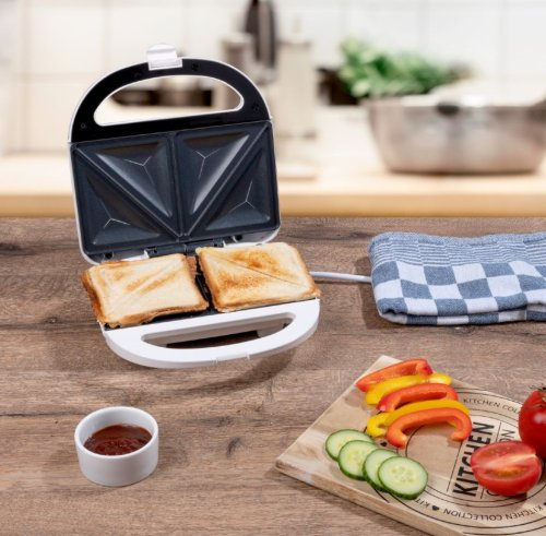 • Všestrannost - Finální sendvič můžete ponechat jako čtverec nebo jej dále rozříznout na připravené trojúhelníčky