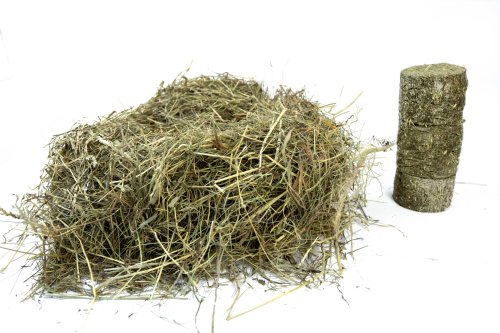 Seno z luk (může obsahovat: bojínek luční, ovsík vyvýšený, medyněk vlnatý, kostřavu červenou, lipnici obecnou, kostřavu luční, srhu říznačku, psárku obecnou, jetel plazivý, jetel luční, krvavec toten, kopretinu bílou, jitrocel kopinatý, druhy zvonku a další).