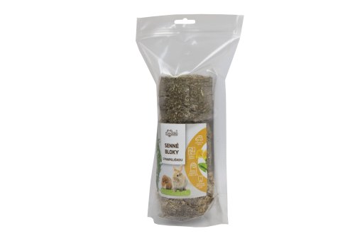 Senné bloky s pampeliškou jsou moderní a praktická forma sena, která potěší každého králíka, morče i další býložravé mazlíčky. Vysoká kvalita sena z českých luk je slisovaná do kompaktních bloků, které usnadní dávkování a pomáhají snižovat ztráty krmiva při manipulaci i v ubikaci. Bloky jsou navíc obohaceny o pampelišku, která dodává příjemnou vůni a přirozeně zpestřuje jídelníček vašeho mazlíčka. Díky prosetí a odprášení je seno vhodné i pro zvířata citlivá na kvalitu ovzduší. Bloky jsou ideální na cesty a skvěle se hodí také ke sledování množství přijatého sena – snadno zjistíte, kolik toho zvíře skutečně snědlo. Navíc přirozeně podporují obrušování zubů a slouží i jako zábavný prvek pro zpestření dne.