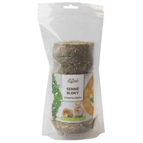 Senné puky s pampeliškou jsou praktickou formou sena, která potěší každého králíka, morče i další býložravé mazlíčky. Seno vysoké kvality z českých luk je slisované do kompaktních bloků, které usnadní dávkování a pomáhají snižovat ztráty krmiva při manipulaci i v ubikaci. Pampeliška dodává příjemnou vůni, podporuje činnost jater a močových cest a napomáhá detoxikaci a trávení. Díky prosetí a odprášení je seno vhodné i pro zvířata citlivá na kvalitu vzduchu. Bloky jsou ideální na cesty a usnadňují sledování množství přijatého sena. Navíc přirozeně podporují obrušování zubů a slouží i jako zábavný prvek pro zpestření dne. Hlavní přednosti: