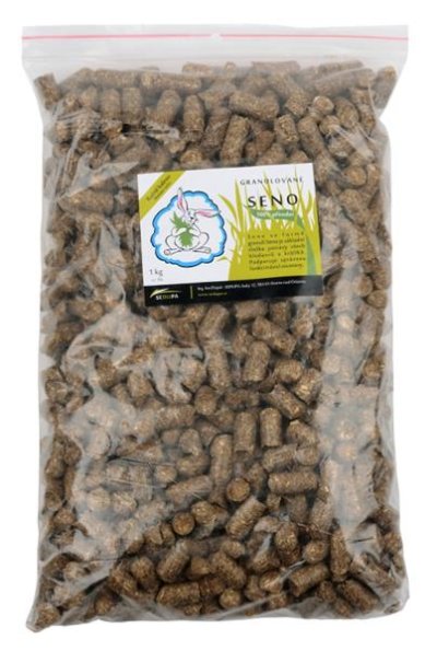 Seno ve formě granulí. Seno je základní složka potravy hlodavců a králíků. Podporuje správnou funkci trávicí soustavy. Výhodou granulované formy sena je větší čistota v okolí klece. Při krmení svého zvířátka se nemusíte bát, že seno rozsypete. Baleno ručně, skladujte v suchu.